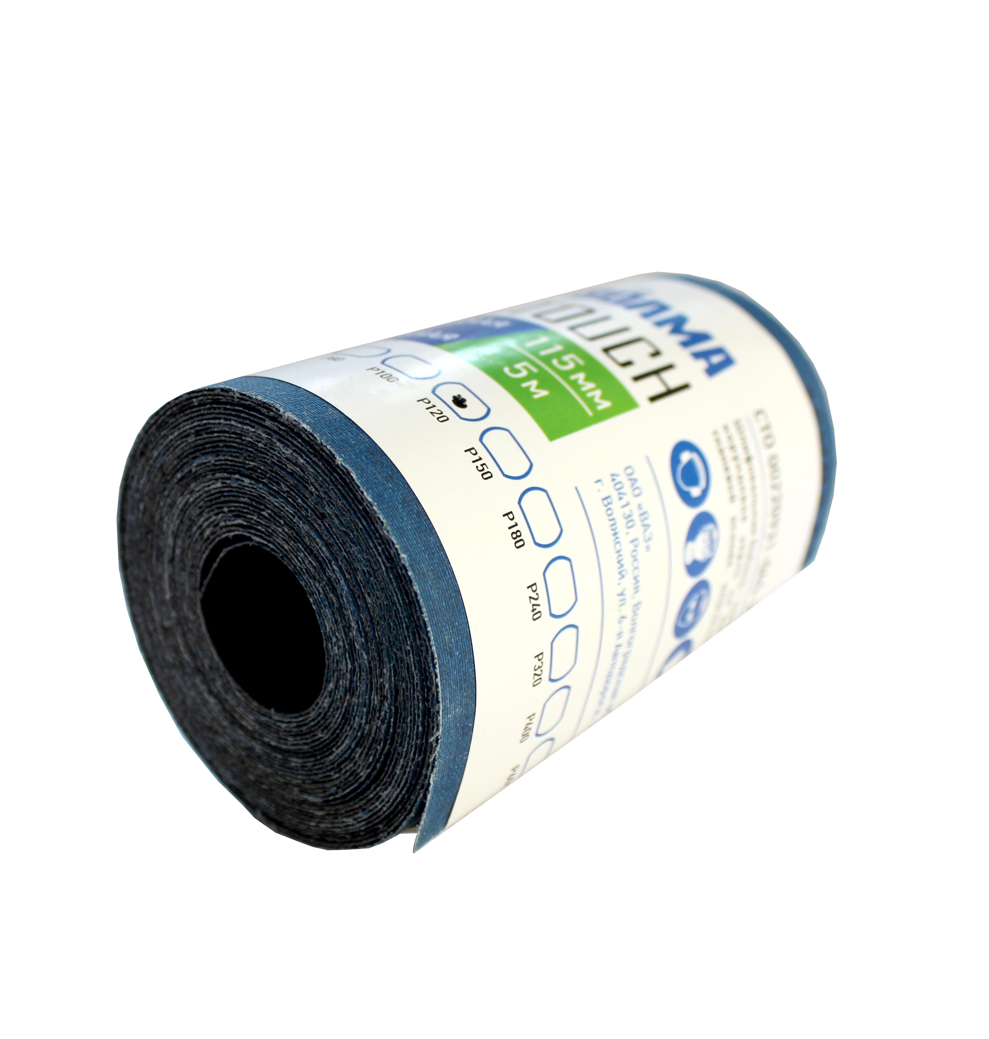 Представляет собой рулон на тканевой основе. Эластичная основа из ткани покрыта жидким бакелитом, который удерживает абразивный материал электрокорунд ( оксид алюминия). Назначение: ручная обработка дерева, шпаклевки, металла и краски